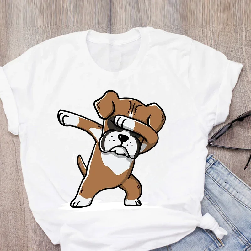 Women’s Funny French Bulldog T-Shirt – Cartoon Print Summer Tee