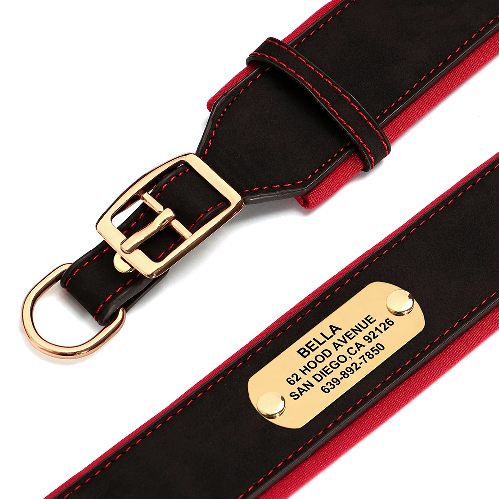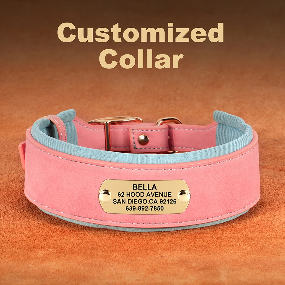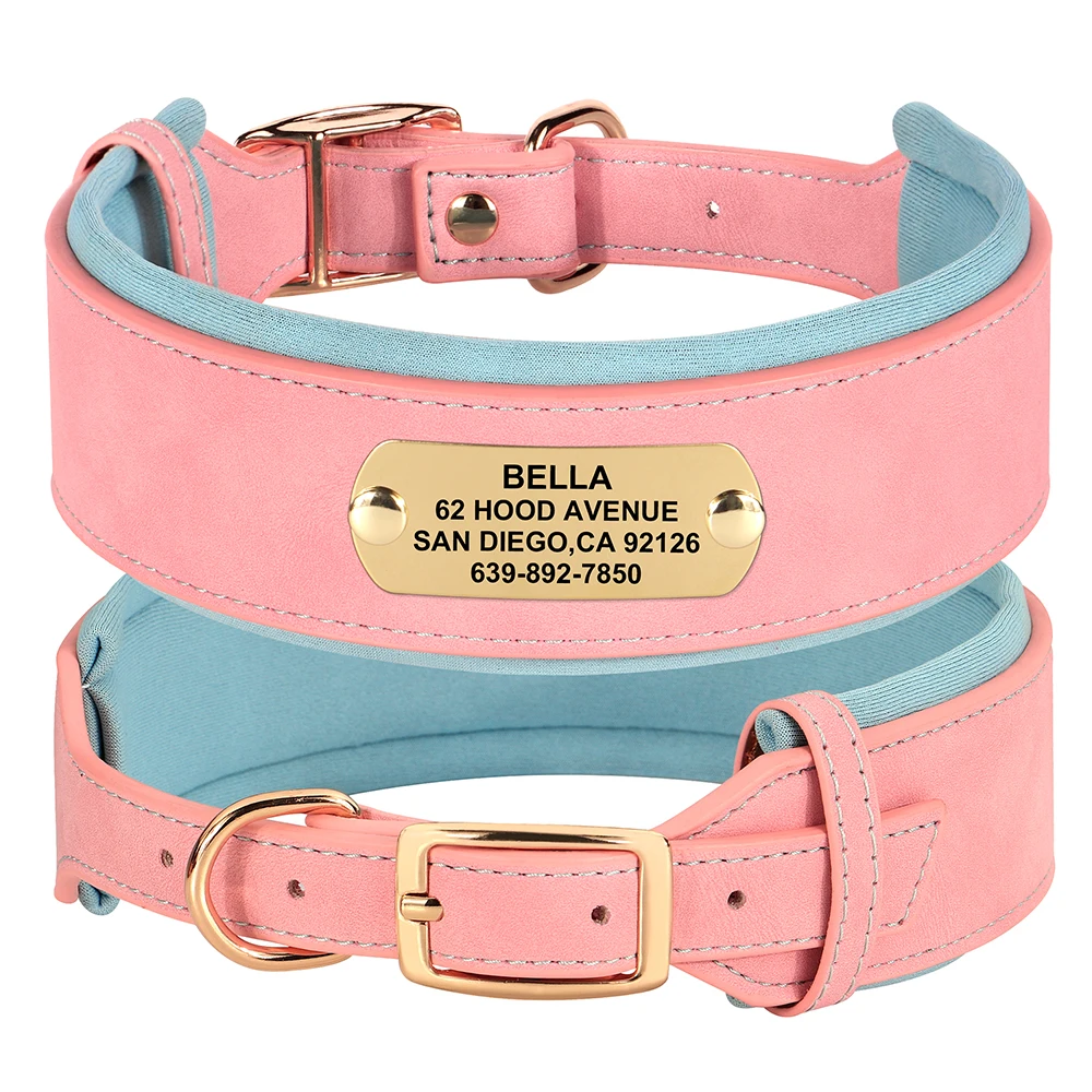 Personalized PU Leather Dog Collar – Soft Padded Custom Pet Name Tag