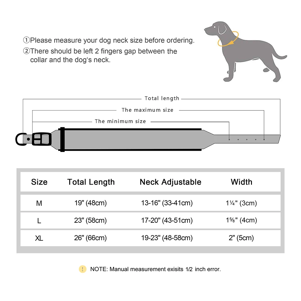Personalized PU Leather Dog Collar Soft Padded Wide Dog Collars Customized Pet Tag Name Necklace for Medium Large Dogs Pitbull